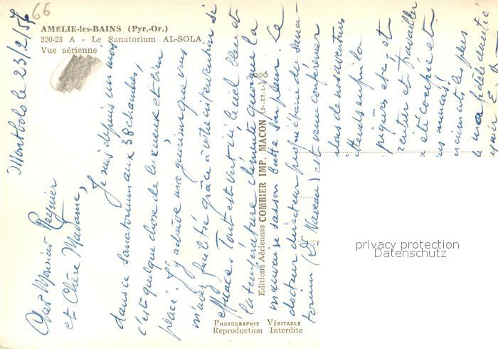 13154432 Amelie-les-Bains-Palalda Sanatorium Al Sola vue aérienne postalisch nicht gelaufen Erhaltung siehe scans [FriedD77] KatCode: 11170066166003