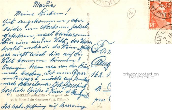 13483469 carte postale Amelie-les-Bains-Palalda Vue Generale Massif du Canigou Pyrénées postalisch gelaufen Erhaltung siehe scans [FriedD77] KatCode: 11170066166003