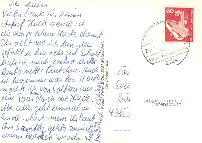 73082226 alte Postkarte Amelinghausen Lueneburger Heide Kirche Schwimmbad Ortsansicht Kate postalisch gelaufen Erhaltung siehe scans [KathaD81] KatCode: 11110003355002
