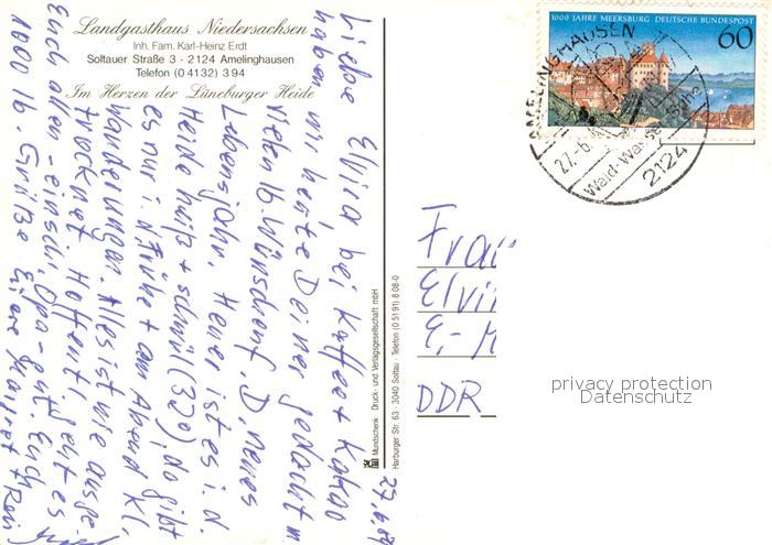 73660034 alte Postkarte Amelinghausen Lueneburger Heide Landgasthaus Niedersachsen postalisch gelaufen Erhaltung siehe scans [FriedD77] KatCode: 11110003355002