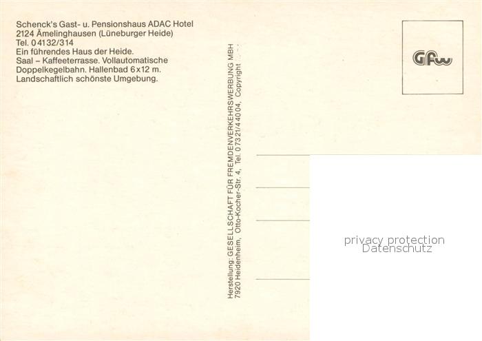 73615457 Amelinghausen Lueneburger Heide Schencks Gast und Pensionshaus postalisch nicht gelaufen Erhaltung siehe scans [WerneD78] KatCode: 11110003355002