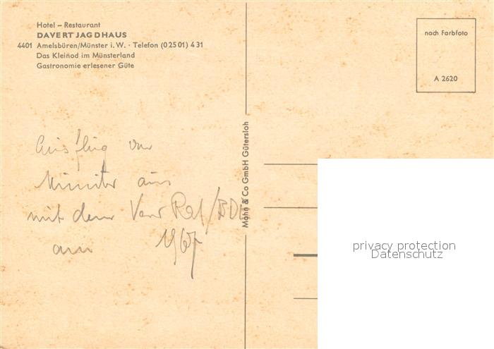 73634450 Amelsbueren Hotel Restaurant Davert Jagdhaus postalisch nicht gelaufen Erhaltung siehe scans [FriedD77] KatCode: 11110005515000