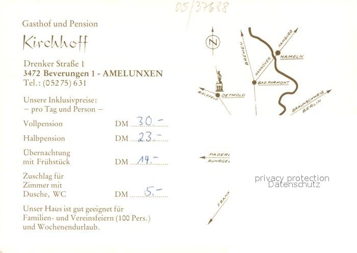 73651171 Amelunxen Gasthof Pension Kirchhoff Gastraum Garten Ortsansicht mit Kirche postalisch nicht gelaufen Werbekarte (keine Postkarte) Erhaltung siehe scans [FriedD77] KatCode: 11110005762008