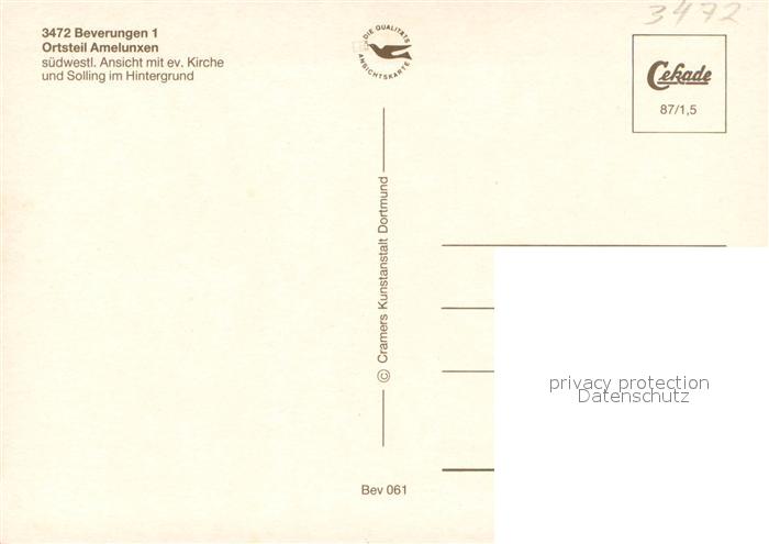 73673809 Amelunxen Panorama mit ev Kirche und Solling postalisch nicht gelaufen Erhaltung siehe scans [WerneD78] KatCode: 11110005762008