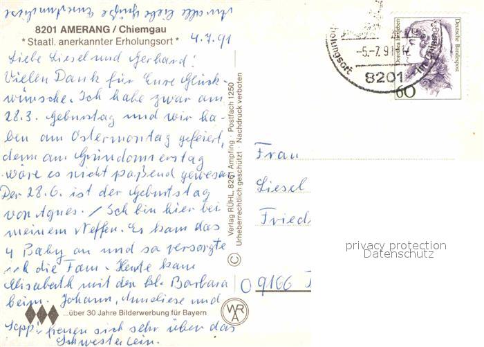 72641451 alte Postkarte Amerang Teilansichten Erholungsort Kirche Brunnen Maibaum Waldweg See postalisch gelaufen Erhaltung siehe scans [FriedD77] KatCode: 11110009187113
