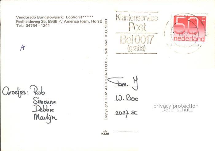 old postcard America Niederlande Vendorado Bungalowparl Loohorst Fliegeraufnahme postalisch gelaufen Erhaltung siehe scans