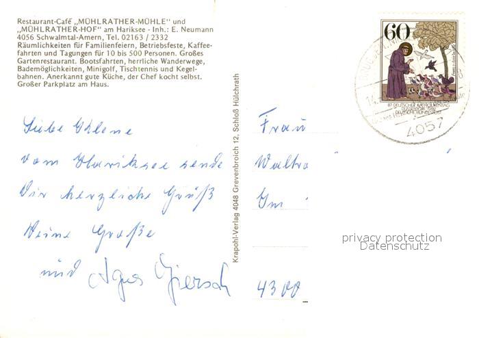 73211714 alte Postkarte Amern Muehlrather Muehle am Hariksee Gaststube Speisesaal Gondelteich postalisch gelaufen Erhaltung siehe scans [WerneD78] KatCode: 11110005166024