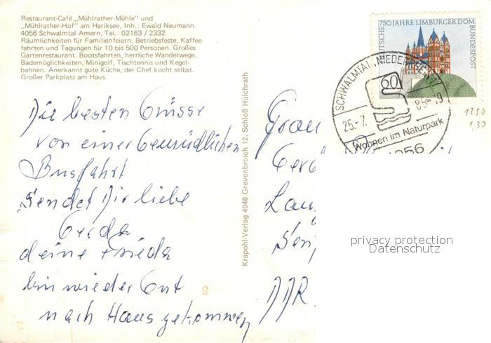73647008 alte Postkarte Amern Muehlrather Muehle und Muehlrater Hof am Hariksee Gaststube Kegelbahnen postalisch gelaufen Erhaltung siehe scans [WerneD78] KatCode: 11110005166024