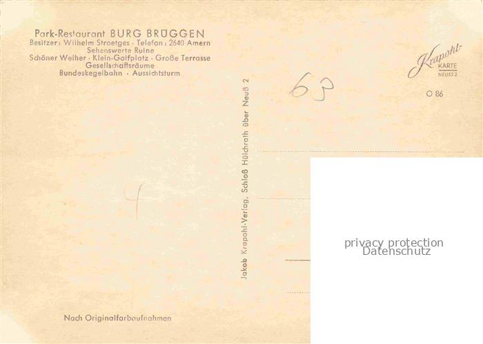74023335 Amern Park Restaurant Burg Brueggen postalisch nicht gelaufen Erhaltung siehe scans [FriedD77] KatCode: 11110005166024