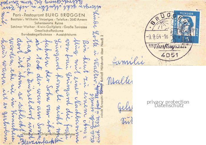 74020425 alte Postkarte Amern Park Restaurant Burg Brueggen postalisch gelaufen Erhaltung siehe scans [FriedD77] KatCode: 11110005166024