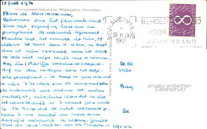alte Postkarte Amersfoort Internationale School Wijsbegeerte postalisch gelaufen Erhaltung siehe scans
