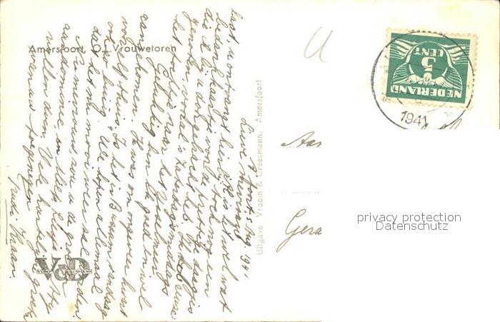 old postcard Amersfoort OL Vrouwetoren postalisch gelaufen Erhaltung siehe scans