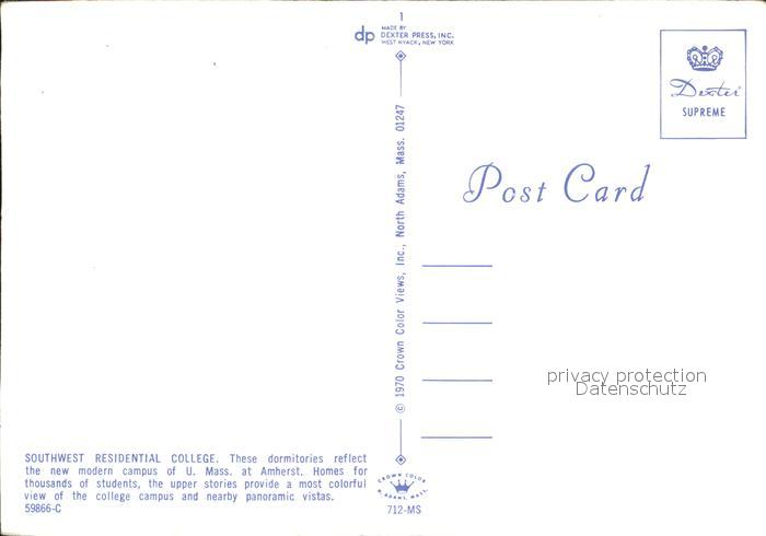 72069000 Amherst Massachusetts Southwest Residential College postalisch nicht gelaufen Erhaltung siehe scans KatCode: 14140230000000