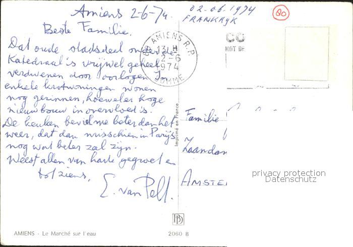 12234420 carte postale Amiens Le Marche sur l’eau postalisch gelaufen Erhaltung siehe scans KatCode: 11170080280021