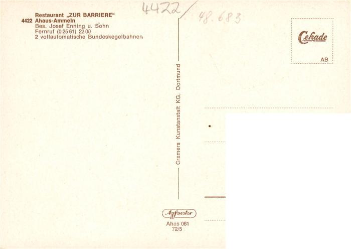 73894057 Ammeln Restaurant Zur Barriere Gastraeume Strand postalisch nicht gelaufen Erhaltung siehe scans [WerneD78] KatCode: 11110005554004