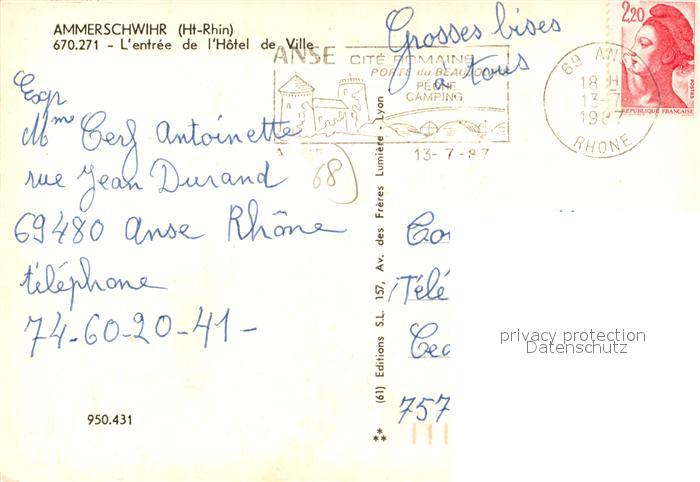 13259811 carte postale Ammerschwihr Entree de l’Hotel de Ville postalisch gelaufen Erhaltung siehe scans [WerneD78] KatCode: 11170068568005