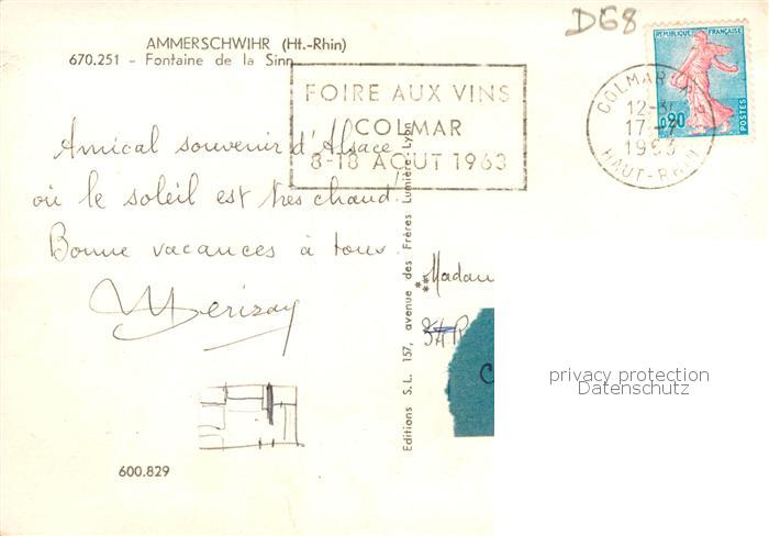 13826333 Ammerschwihr Fontaine de la Sinn postalisch gelaufen Erhaltung siehe scans [FriedD77] carte postale Frie Katcode 11170068568005