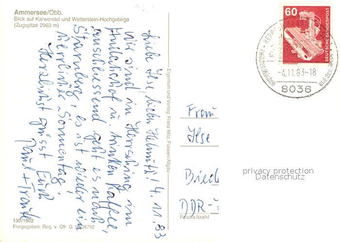 73149115 alte Postkarte Ammersee Blick auf Karwendel und Wetterstein Hochgebirge Zugspitze Fliegeraufnahme postalisch gelaufen Erhaltung siehe scans [FriedD77] KatCode: 11110009181144