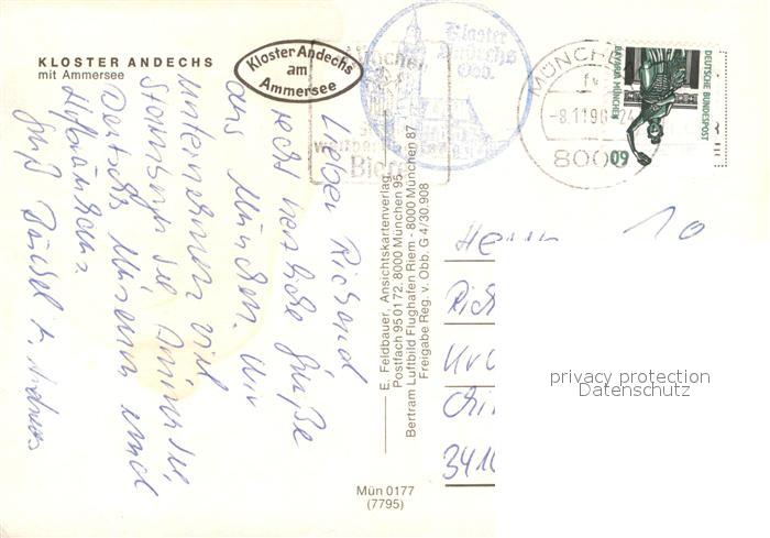 73169891 alte Postkarte Ammersee Fliegeraufnahme Kloster Andechs postalisch gelaufen Erhaltung siehe scans [KathaD81] KatCode: 11110009181144