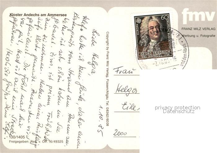 72962811 alte Postkarte Ammersee Kloster Andechs postalisch gelaufen Erhaltung siehe scans [WerneD78] KatCode: 11110009181144