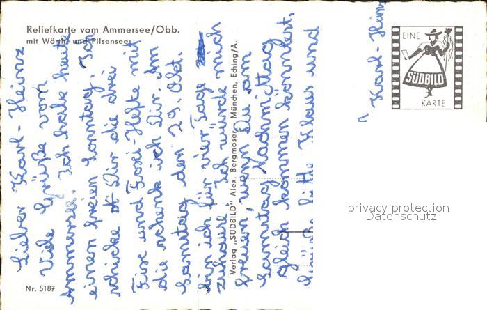 71903179 Ammersee mit Woerthsee und Pilsensee Alpenpanorama Wappen postalisch nicht gelaufen Reliefkarte Erhaltung siehe scans KatCode: 11110009181144