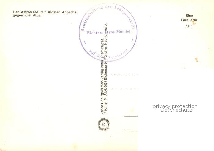 73108167 Ammersee Ortungskarte Klsoter Andechs Breitbrunn postalisch nicht gelaufen Erhaltung siehe scans [NatalD47] KatCode: 11110009181144