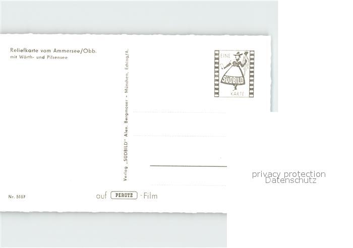 71986080 Ammersee Reliefkarte mit Woerth- und Pilsensee postalisch nicht gelaufen Erhaltung siehe scans KatCode: 11110009181144