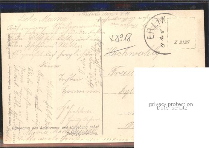 41970006 alte Postkarte Ammersee und Umgebung Alpenpanorama Wettersteingebirge Kloster Andechs postalisch gelaufen Erhaltung siehe scans KatCode: 11110009181144