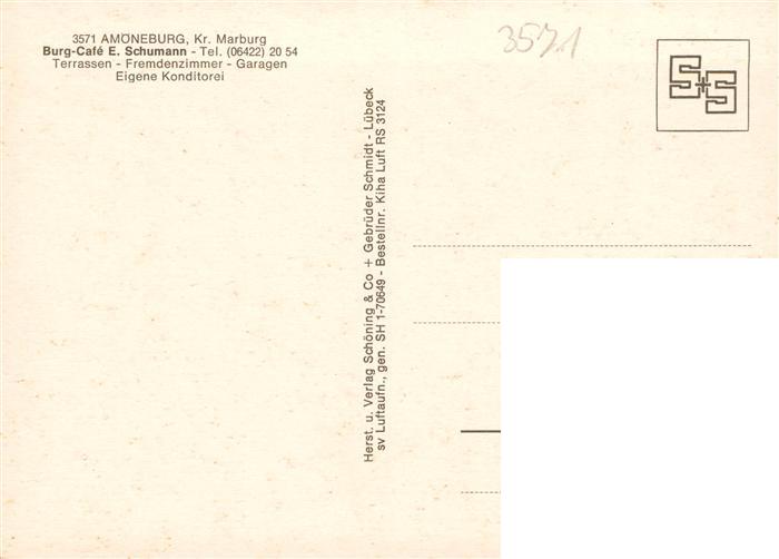 73935251 Amoeneburg Burg Cafe Fliegeraufnahme Kirche postalisch nicht gelaufen Erhaltung siehe scans [FriedD77] KatCode: 11110006534001