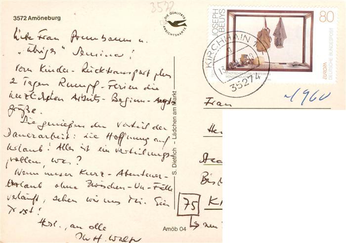 73935266 alte Postkarte Amoeneburg Panorama mit Schloss und Kirche postalisch gelaufen Erhaltung siehe scans [FriedD77] KatCode: 11110006534001