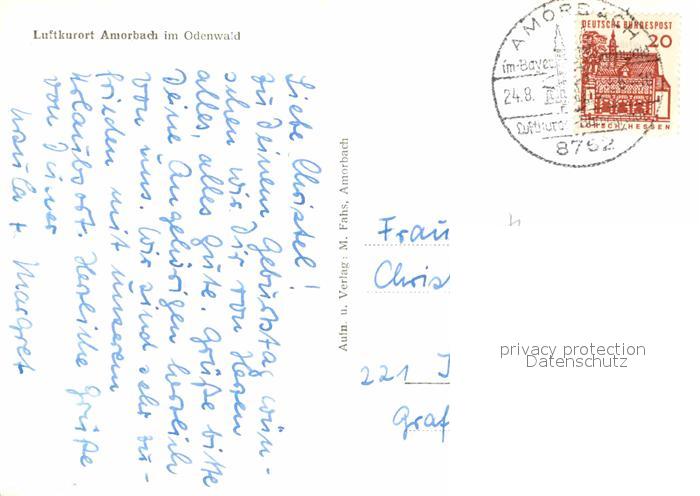 72796359 alte Postkarte Amorbach Miltenberg postalisch gelaufen Erhaltung siehe scans [NatalD47] KatCode: 11110009676112