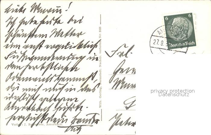 72148398 alte Postkarte Amorbach Miltenberg Blick vom Beuchnerberg postalisch gelaufen Erhaltung siehe scans KatCode: 11110009676112