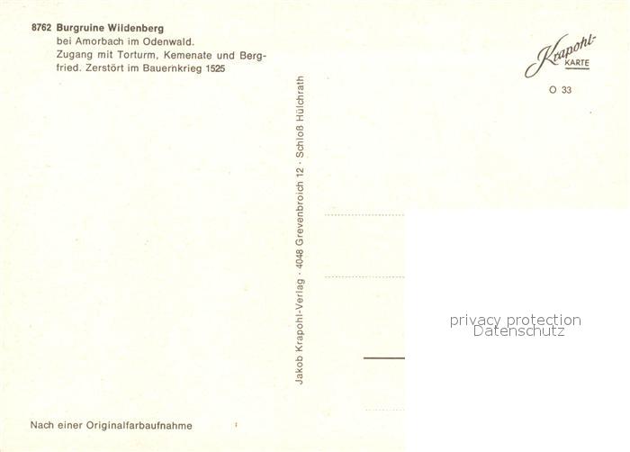73183121 Amorbach Miltenberg Burgruine Wildenberg im Odenwald postalisch nicht gelaufen Erhaltung siehe scans [FriedD77] KatCode: 11110009676112