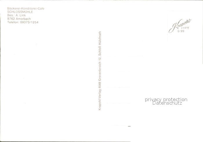 71946432 Amorbach Miltenberg Cafe Baeckerei Schlossmuehle postalisch nicht gelaufen Erhaltung siehe scans KatCode: 11110009676112