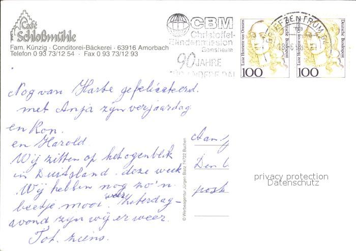 72113752 alte Postkarte Amorbach Miltenberg Cafe Schlossmuehle postalisch gelaufen Erhaltung siehe scans KatCode: 11110009676112