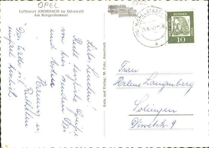 41326920 Amorbach Miltenberg Hotel Post Am Kriegerdenkmal Opel postalisch gelaufen gute Erhaltung Alte Ansichtskarte Postkarte alte Postkarte hz_F Katcode 11110009676112