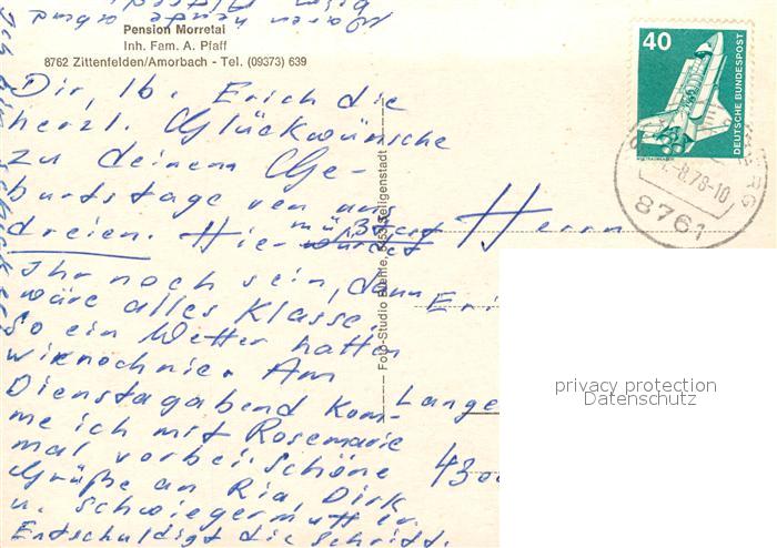 73211698 alte Postkarte Amorbach Miltenberg Pension Morretal Gaststube Hallenbad Panorama postalisch gelaufen Erhaltung siehe scans [WerneD78] KatCode: 11110009676112