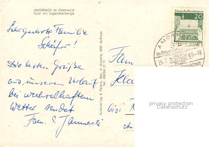 73271614 alte Postkarte Amorbach Miltenberg Total mit Jugendherberge postalisch gelaufen Erhaltung siehe scans [FriedD77] KatCode: 11110009676112