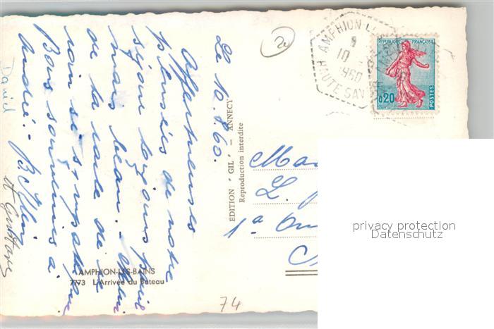 13489507 carte postale Amphion Arrivée du Bateau postalisch gelaufen Erhaltung siehe scans [FriedD77] KatCode: 11170074474218