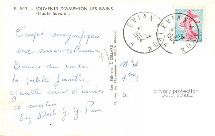 12706722 carte postale Amphion Fliegeraufnahme et Lac Leman postalisch gelaufen Erhaltung siehe scans [LiesaD40] KatCode: 11170074474218