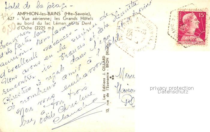 13534586 carte postale Amphion Grands Hôtels Lac Leman Dent d Oche vue aérienne postalisch gelaufen Erhaltung siehe scans [FriedD77] KatCode: 11170074474218