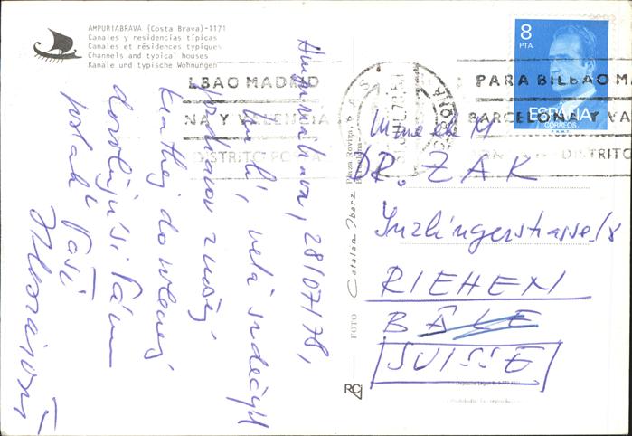 old postcard Ampuriabrava Canales y residencias tipicas postalisch gelaufen Erhaltung siehe scans
