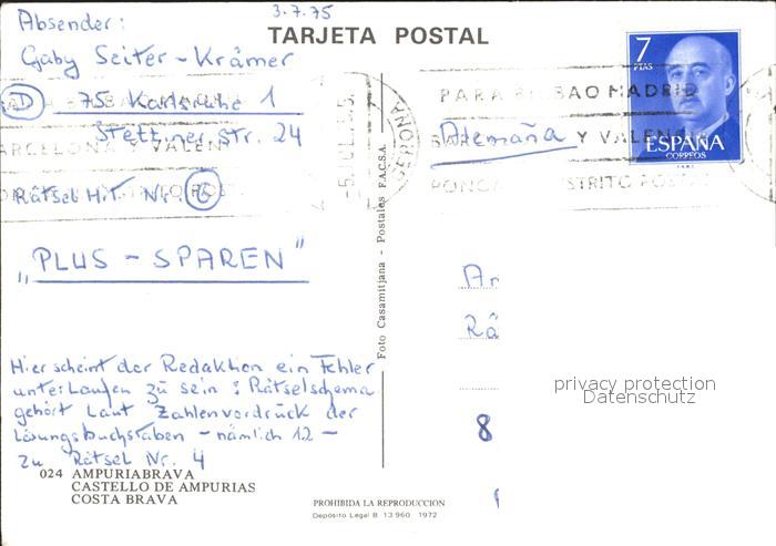 old postcard Ampuriabrava Castello de Ampurias Strand Hotel Flugplatz postalisch gelaufen Erhaltung siehe scans