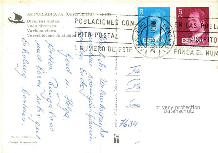 74084705 old postcard Ampuriabrava Costa Brava ES Fliegeraufnahmen Teilansichten postalisch gelaufen Erhaltung siehe scans [WerneD78] KatCode: 11510