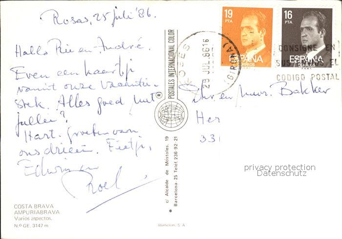 old postcard Ampuriabrava Fliegeraufnahme Hafen postalisch gelaufen Erhaltung siehe scans