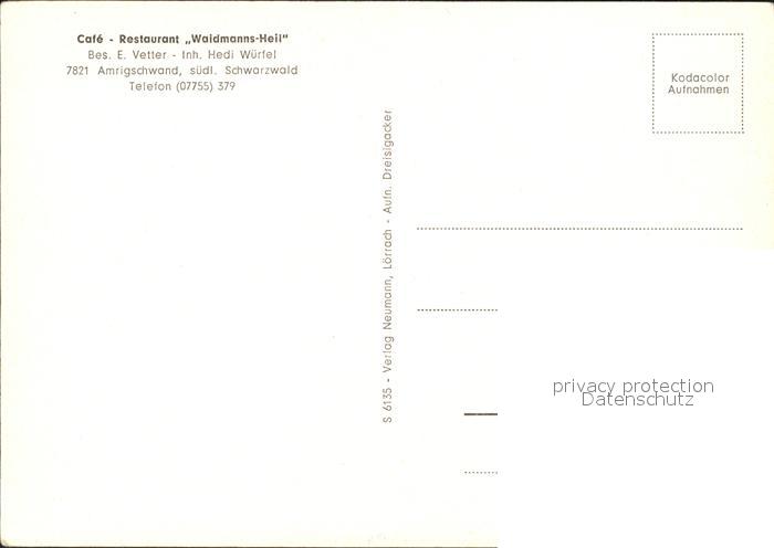 71832378 Amrigschwand Cafe Restaurant Waidmanns-Heil postalisch nicht gelaufen Erhaltung siehe scans KatCode: 11110008337051