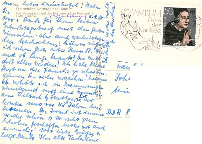 73880025 alte Postkarte Amrum Badestrand mit Nordseeheilbad Norddorf Fliegeraufnahme postalisch gelaufen Erhaltung siehe scans [WerneD78] KatCode: 11110001054085