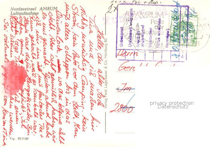 73647885 alte Postkarte Amrum Fliegeraufnahme postalisch gelaufen Erhaltung siehe scans [WerneD78] KatCode: 11110001054085