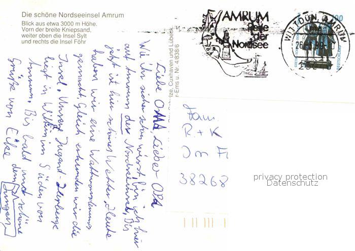 72668812 alte Postkarte Amrum Fliegeraufnahme mit Insel Sylt und Foehr postalisch gelaufen Erhaltung siehe scans [LiesaD40] KatCode: 11110001054085