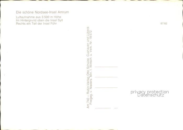 71950575 Amrum Fliegeraufnahme mit Sylt und Foehr postalisch nicht gelaufen Erhaltung siehe scans KatCode: 11110001054085